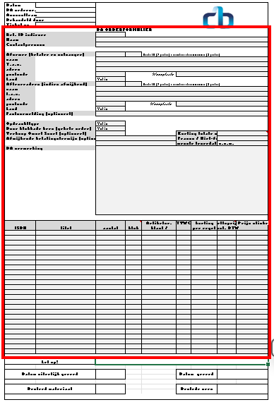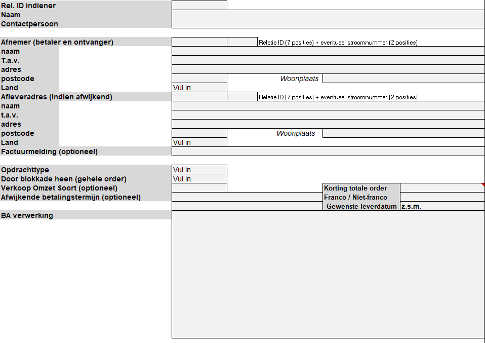 Ontvangen wij een werkblad dat niet of niet volledig is ingevuld volgens onderstaande instructie, kunnen wij deze retour sturen met het verzoek gegevens verder aan te vullen. Hierdoor loopt de order vertraging op.