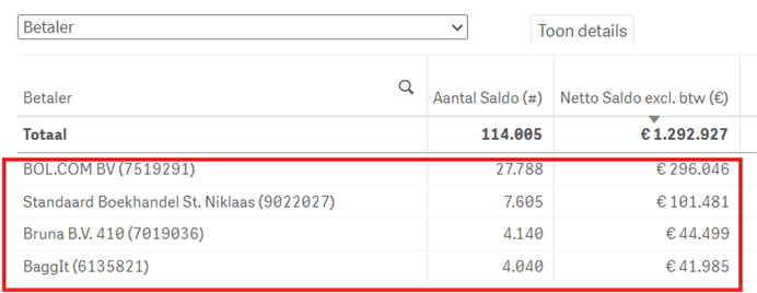 - Zie welke afnemers in de periode het meeste hebben besteld: