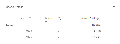 - Nu zie je de aantallen van februari 2026 t.o.v. februari 2025: